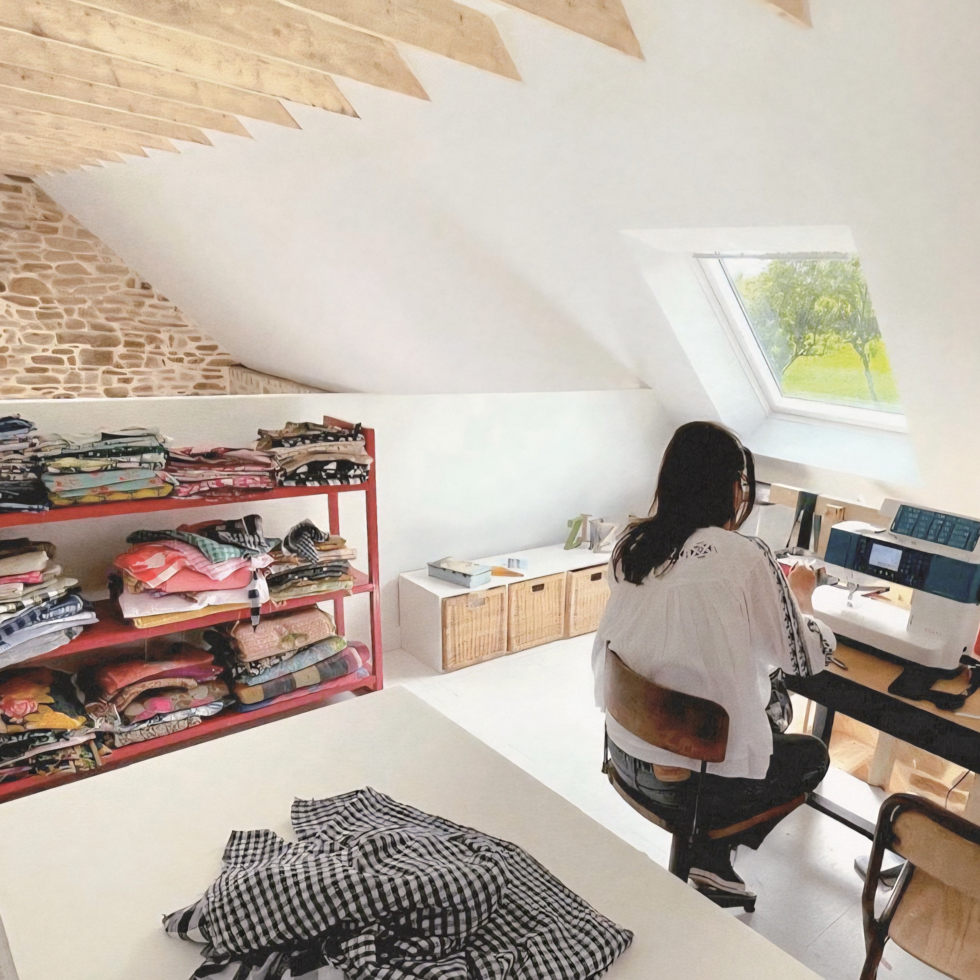 Chaque pièce est un assemblage unique de tissus oubliés revalorisés.